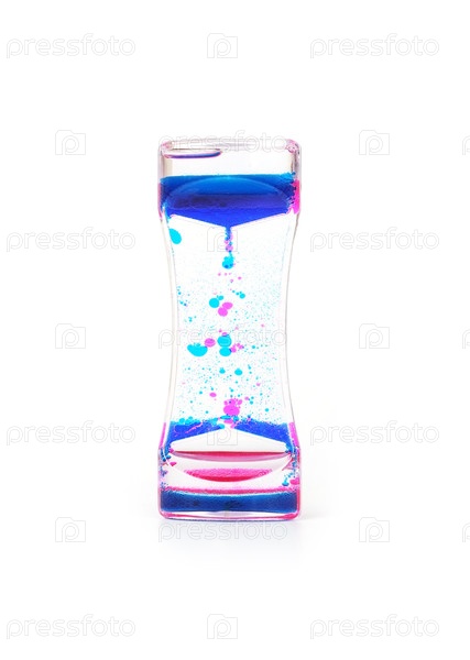 Водные часы (клепсидра) с цветными каплями, изолированными на белом фоне
