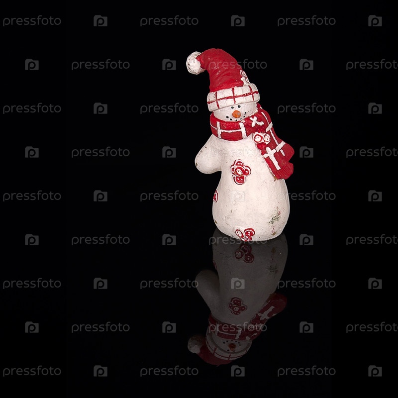 Снеговик с винтовыми свечами изолированный на черном фоне