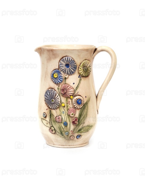 Керамический кувшин для холодных напитков изолирован на белом фоне
