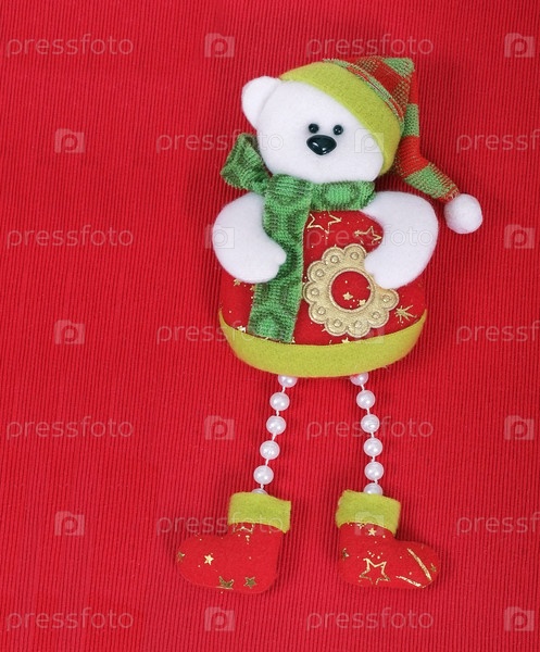 Рождественская игрушка "Медведь" изолирована на красном фоне