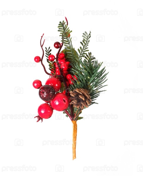 Мокет: Рождественские украшения: ветвь рождественской елки, ягоды и конус