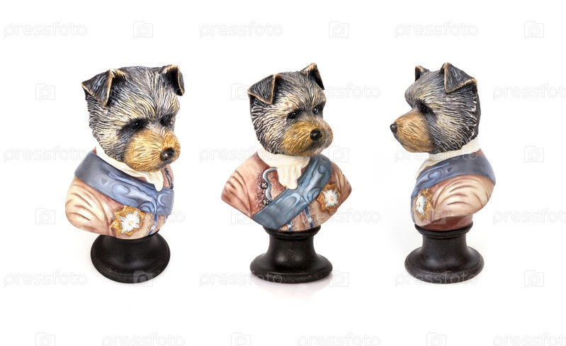 Декоративная статуэтка собаки, изолированной на белом фоне