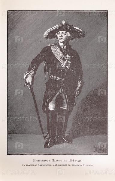 Книга 1907 года, издание Suvorin, Санкт-Петербург, "Регицид 11 марта 1801.Записки участников и современников".Портрет императора Павла I в 1798 году с гравюрой