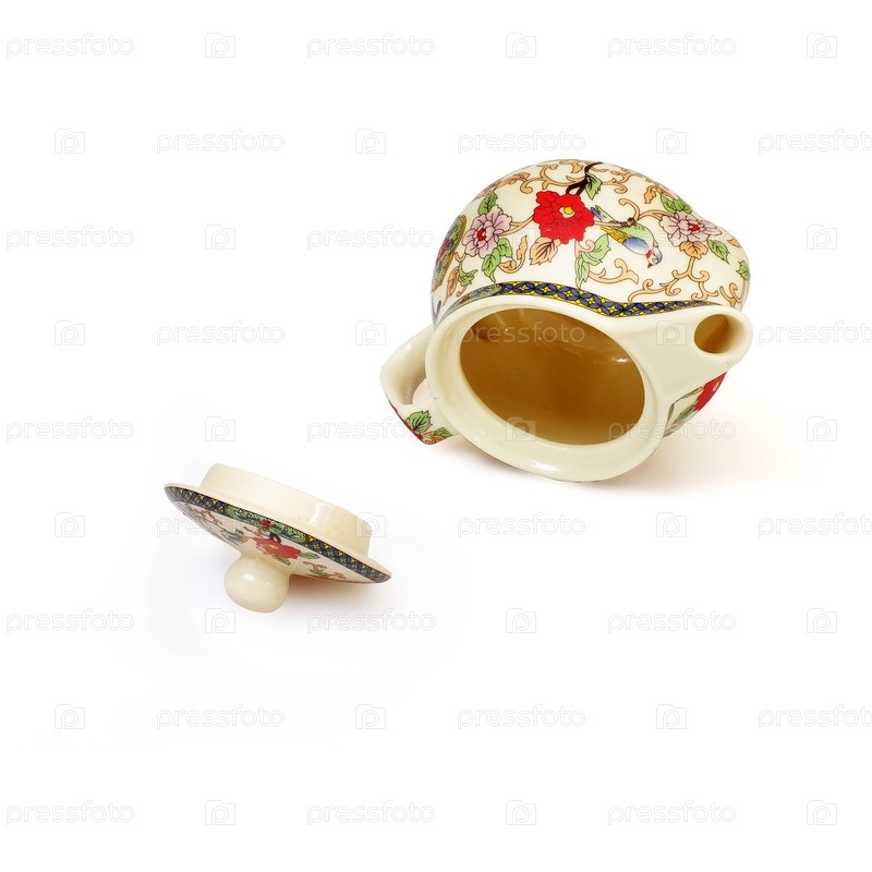 Порцелановый чайник в китайском стиле, изолированный на белом фоне