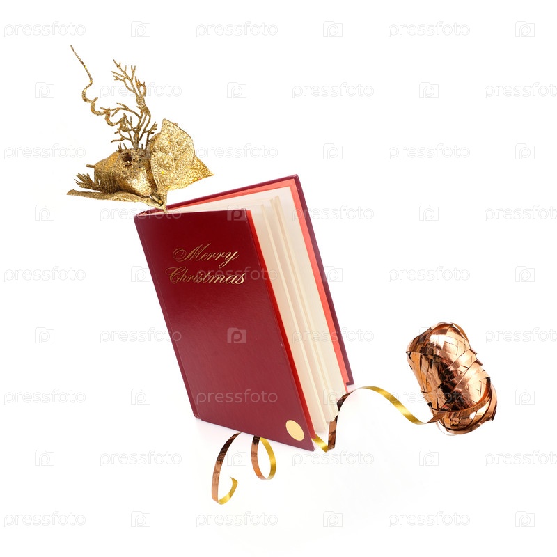 Книга в красной обложке с золотым рождественским декором изолирована на белом фоне