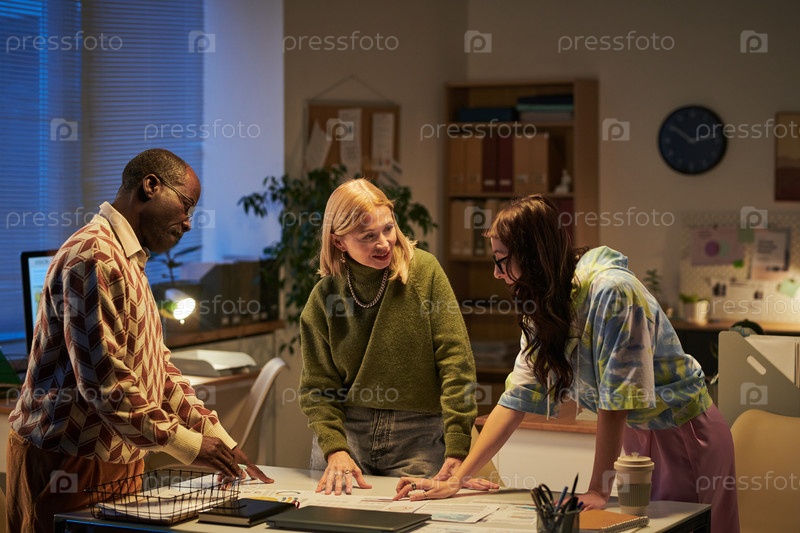 Мультиэтнические молодые люди, сотрудничающие над проектом в офисной обстановке