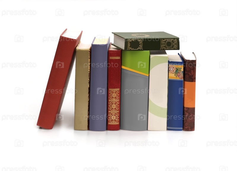 Куча книг в цветных обложках с белыми листами, изолированными на белом фоне