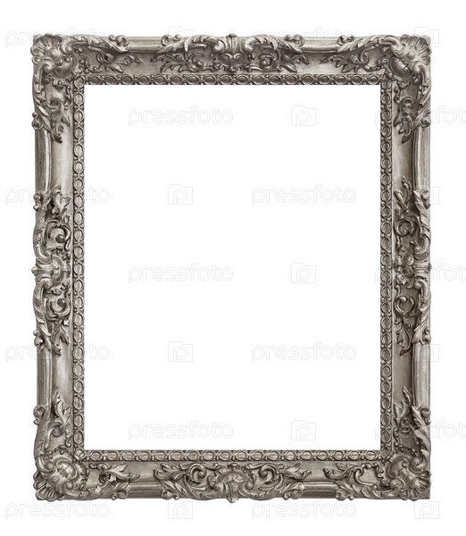 Серебряная рама для картин, зеркал или фотографии изолированной на белом фоне