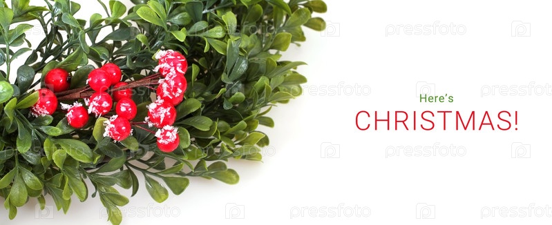 Мокап: новогодний зеленый венок, изолированный на белом фоне
