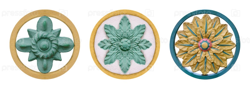 Золотой декоративный элемент в псевдокитайском стиле chinoiserie с цветочным узором, изолированным на белом фоне