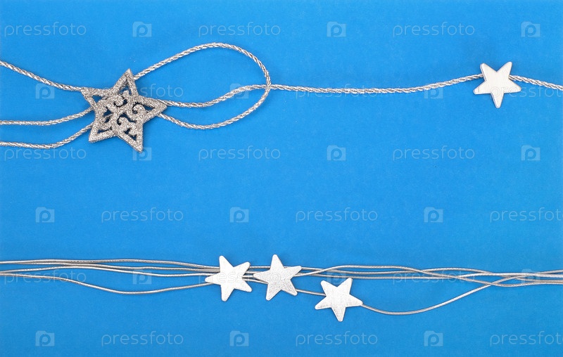 Традиционный рождественский синий фон с серебряными лентами и звездами для приветственных букв / объявлений