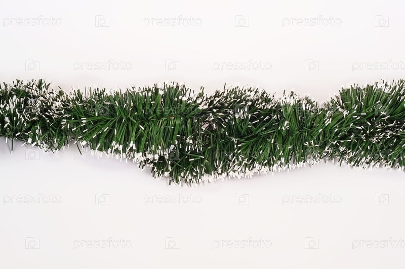 Шаблон новогодних приветствий (зеленый Сhristmas гирлянды на белом фоне)