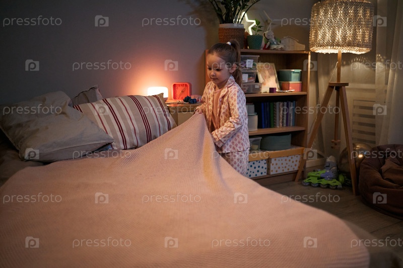 Кавказская девочка готовится к сну во время вечерней рутины