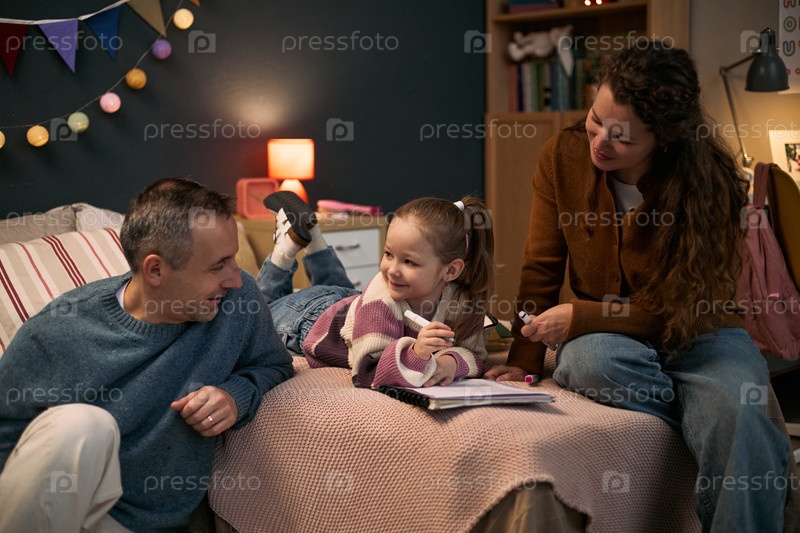 Кавказская семья проводит время вместе, помогая ребенку с домашними заданиями в помещении
