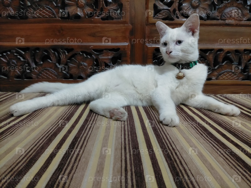 Белая кошка расслабляет