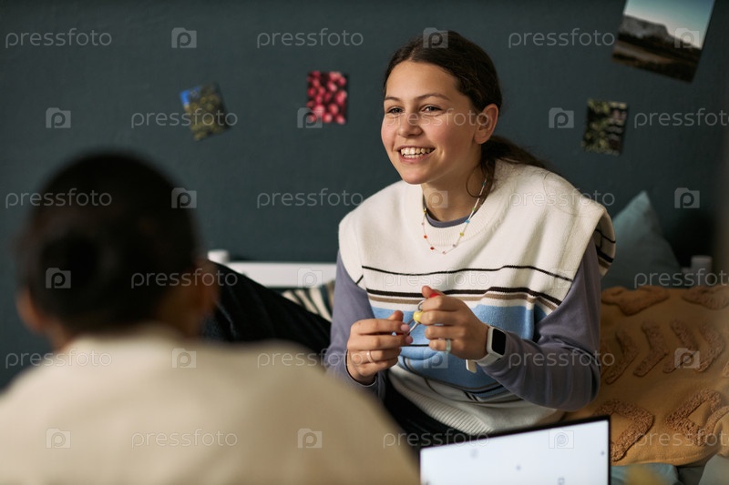 Подростковая девочка улыбается, учась с репетитором во время урока