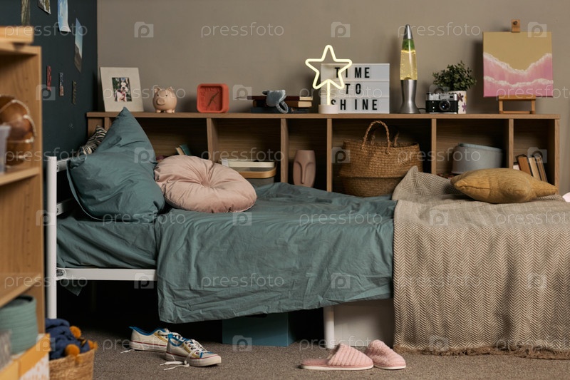 Пустой уютный интерьер спальни, предлагающий онлайн-уроки или дистанционное обучение