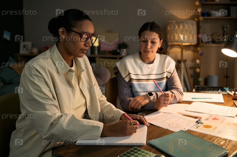 Молодая взрослая черная женщина обучает девочку-подростка во время урока