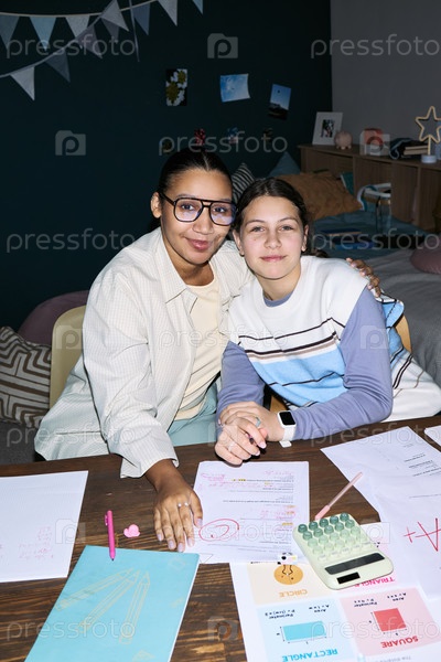 Подростковая девочка и чернокожая молодая взрослая женщина учатся вместе во время урока