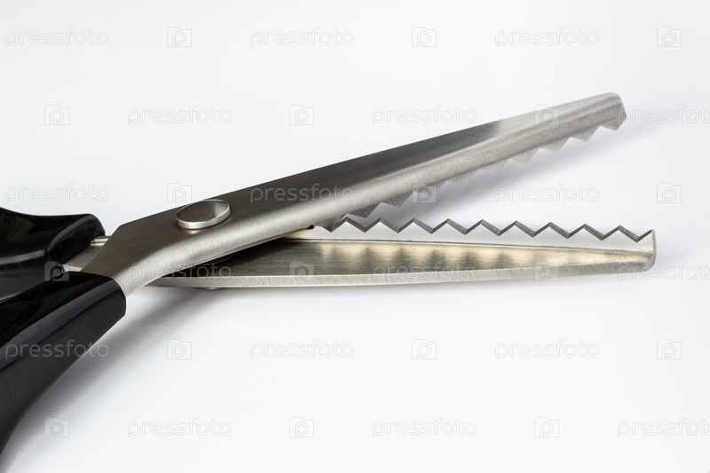 Специальные портные ножницы с зубчатым зигзаковым краем на белом фоне