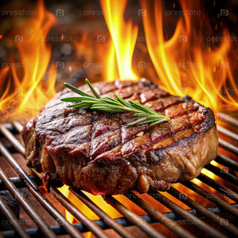 Зажаренный стейк с розмарином на горячем гриле