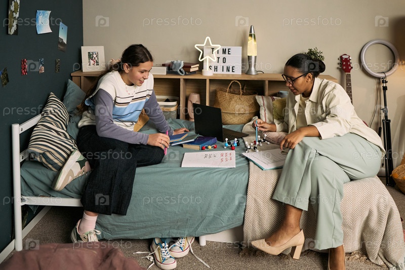 Девушка-подросток и молодая взрослая женщина учатся вместе во время урока