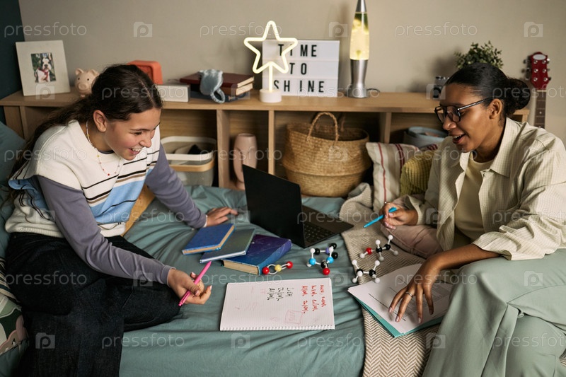 Девушка-подросток и молодая взрослая чернокожая женщина вместе изучают урок наук