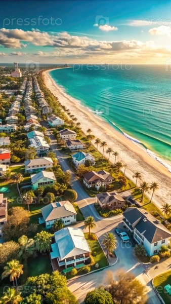 Панорамный воздушный вид пляжного города во Флориде на закате