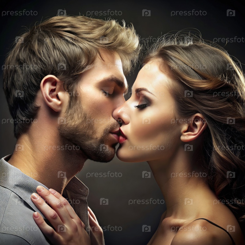 Близкий портрет пары, разделяющей страстный поцелуй