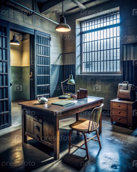Вид на старинный стол и стул полицейского участка. генеративная внутренняя ИИ