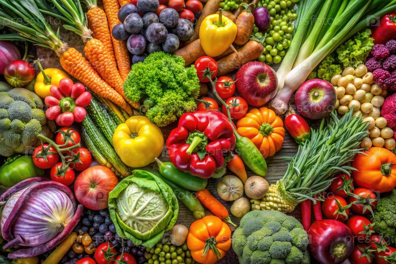 Живое отображение свежих фруктов и овощей. генеративный ИИ