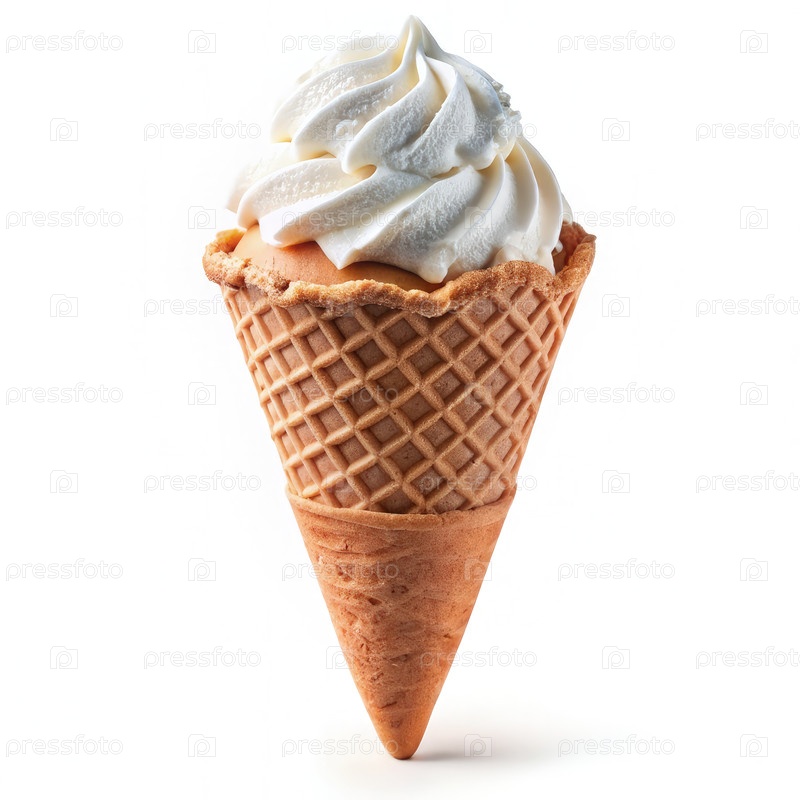 Одноразовое ванильное мороженое Конус, изолированный на белом фоне