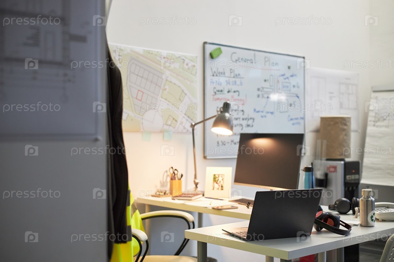 Рабочий стол на строительной площадке Форман в офисной обстановке