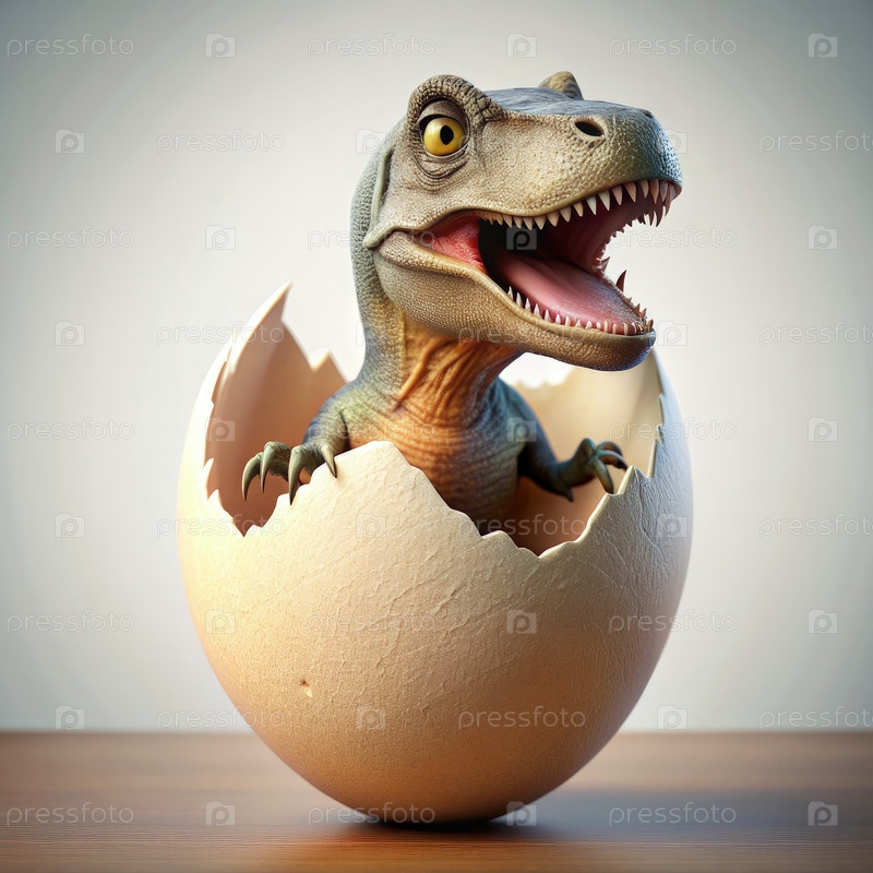 Ребенок Ти-Рекс вылупляется из яичной скорлупы в стиле Эвангелия