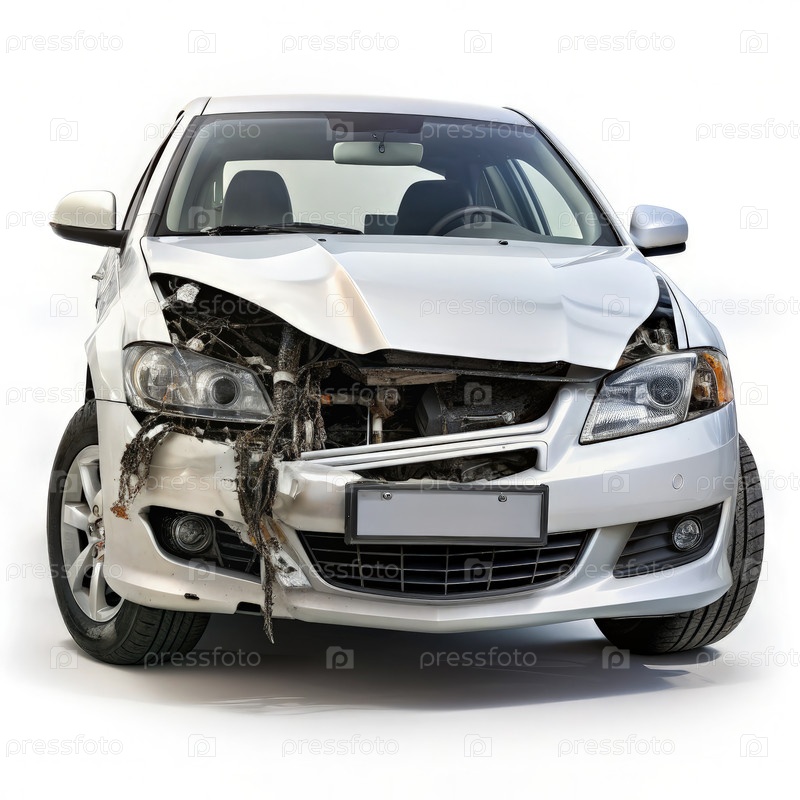 Ущерб от столкновения переднего конца белого седана. генеративный ИИ