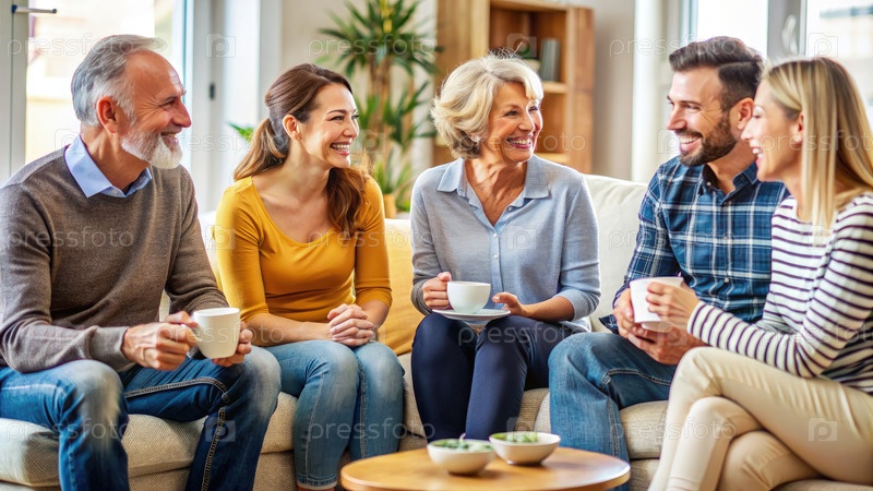 Счастливая семейная встреча после разрешения конфликта в уютной гостиной