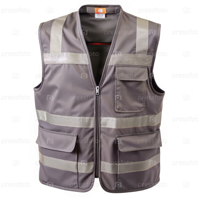 Серый рабочий жилет с отражающимися полосами. генеративный ИИ