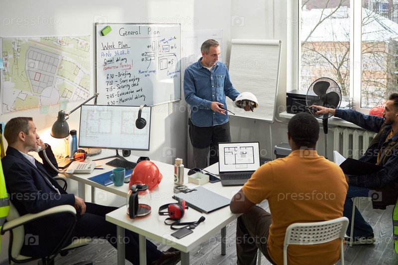 Предводитель кафедры среднего возраста встретился с разнообразной командой сотрудников
