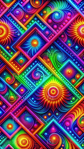 Психоделический абстрактный арт-дизайн с геометрическими формами и яркими цветами