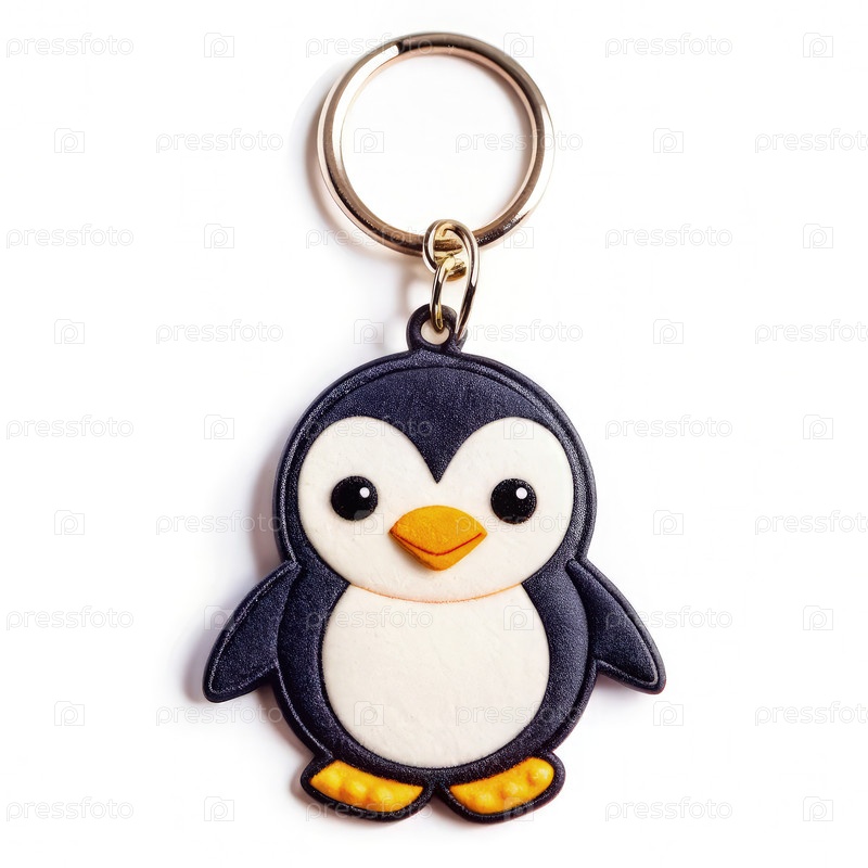 Красивый черно-белый ключик пингвина с золотым кольцом. генеративный AI