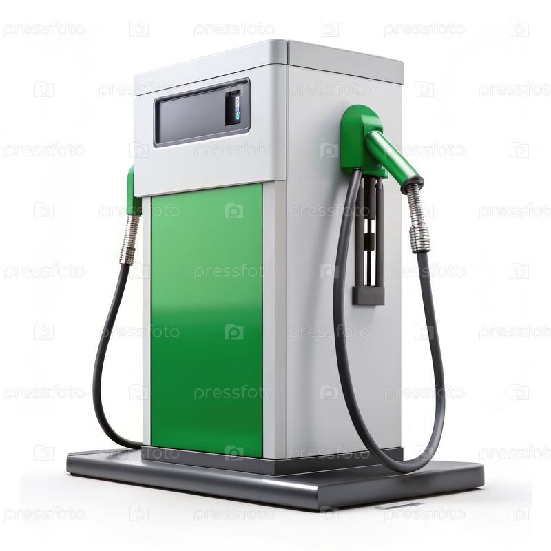 Изолированная зелено-белая топливная насосная машина на белом фоне