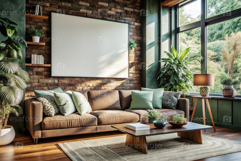 Пустой макет полотна в уютной гостиной с естественным светом. генеративный ИИ