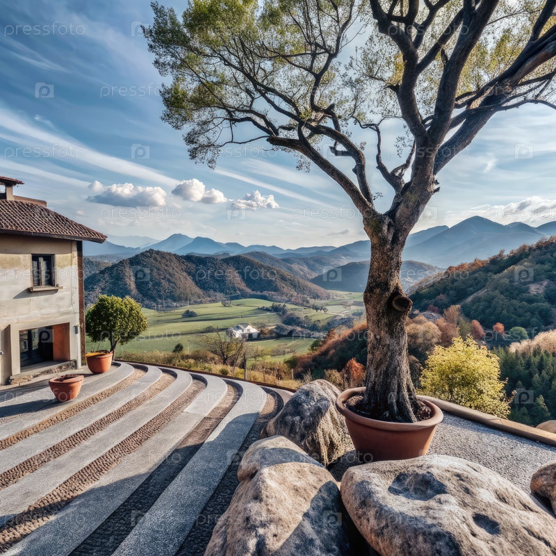 Каменная лестница и вид на итальянскую деревню