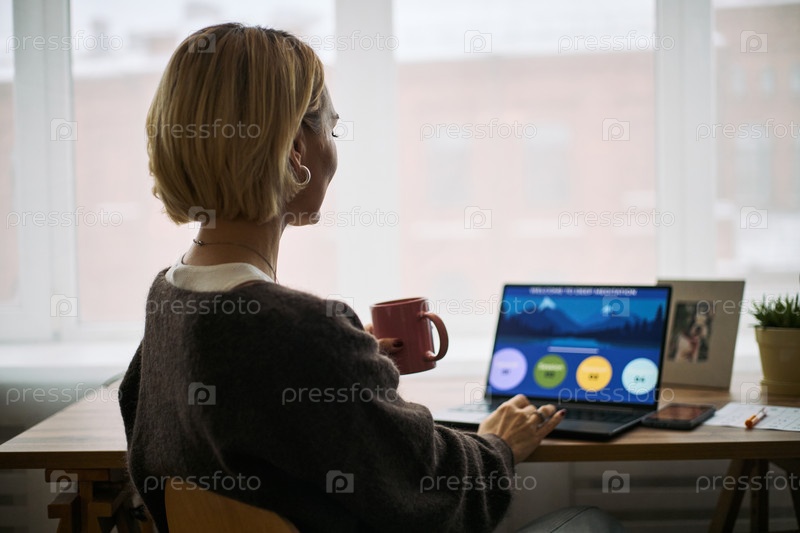 Кавказская женщина среднего возраста, использующая ноутбук для анализа данных о здоровье
