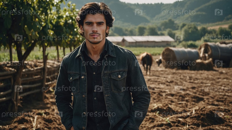 Молодой человек стоит в сельском поле