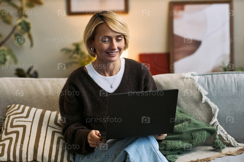 Кавказская женщина улыбается, участвуя в фемтех-сессии здоровья