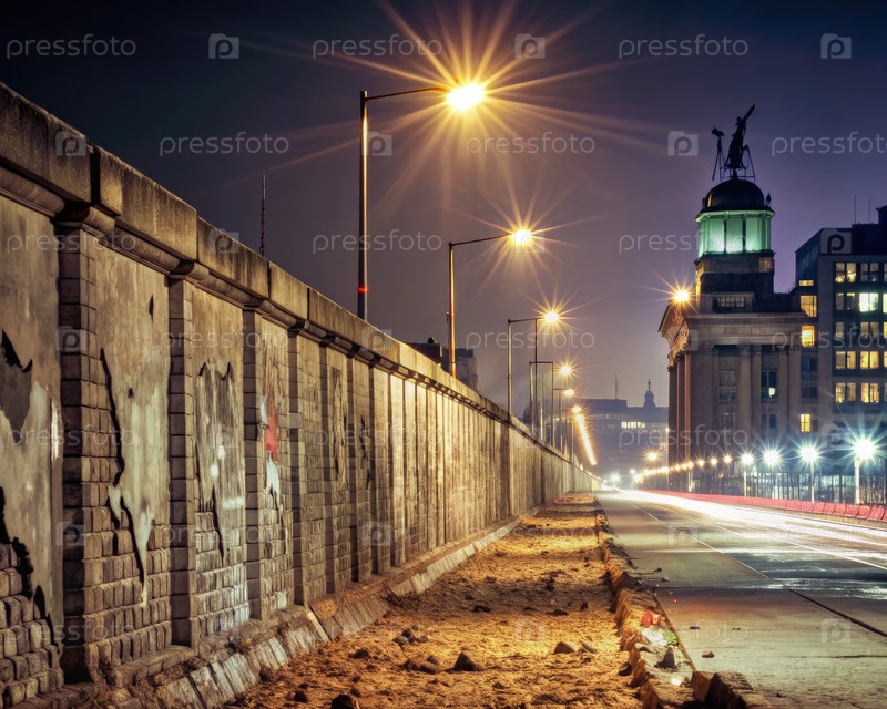 Ночной вид Берлинской стены после ее падения