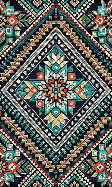 Замысловато-тканый геометрический вышивной шаблон с многоцветными нитями
