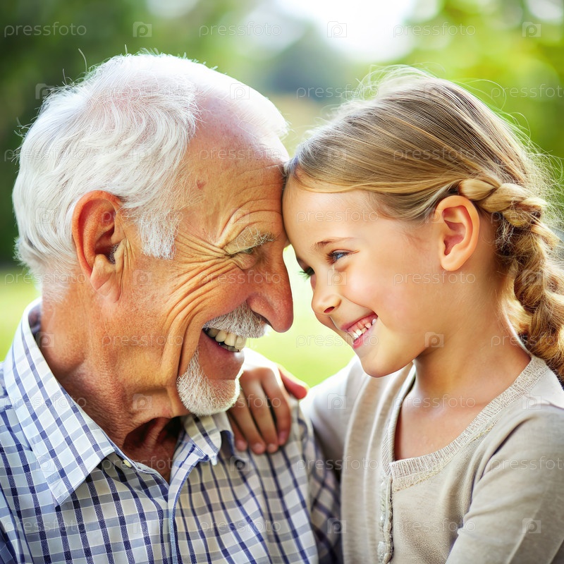 Улыбающийся дедушка и внучка делятся моментом в парке
