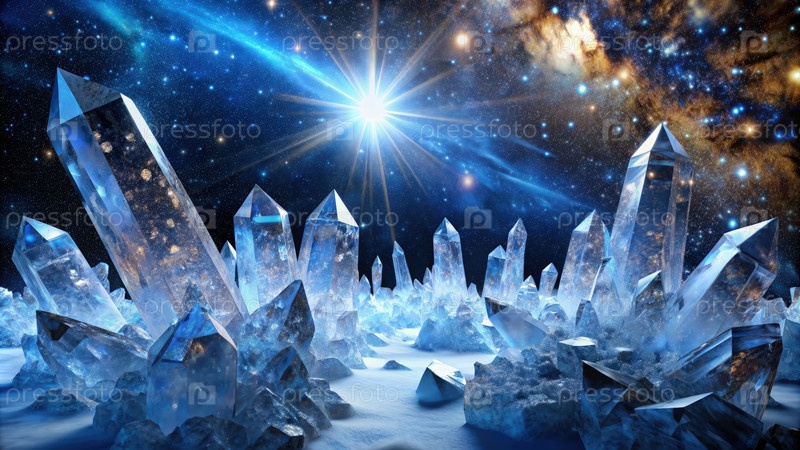 Визуализация кристаллов льда в космосе с яркой звездой